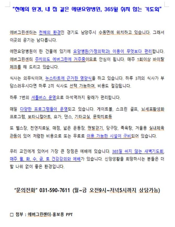 기타 한국-에덴요양병원 "에버그린센터"를 소개합니다.